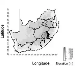 Schoenus galpinii is a sedge species that generally grows in grassland habitats on mountain slopes in the Kwazulu-Natal and Eastern Cape Provinces of South Africa.[1] This species has also been collected from eastern regions of Lesotho.[1]