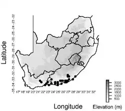 | Documented collection localities in South Africa | |