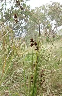 Schoenus limosus is a species of sedge endemic to the KwaZulu-Natal and Eastern Cape provinces of South Africa.[1] It is predominantly a species of wet grasslands, which explains its common name (Muddy Veldrush).[1]