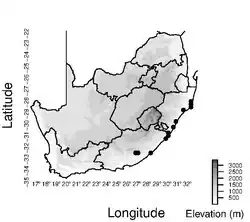 The distribution of S. limosus has a distribution that ranges from the KwaZulu-Natal Province in the north-east to the Amathole Mountains region of the Eastern Cape Province in the south-west.[1] It is a species that mostly grows in muddy grassland sites, but collections have also been made from sandier, drier sites.[1] The elevational range of S. limosus is from near sea level to about 1500 meters.