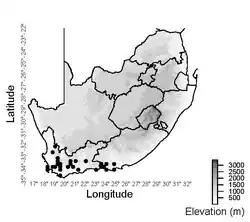 | Documented collection localities in South Africa | |