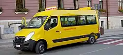 In Italy, school buses are typically painted yellow or orange. The vehicles used for student transport are usually minibuses. As in North America, school buses run on fixed routes and stops.
