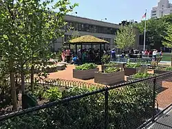 The term also may refer to only the outdoor portion of a campus, distinguished from classroom space.[2] In this context, the schoolyard may be used as a teaching space to instruct students about ecological systems.[2] In recent years there has been a growing movement around the world to create "green" schoolyards that incorporate learning gardens, storm water capture elements, and other natural features that promote environmental literacy.[3]