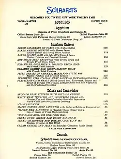 Menu from the 1964 New York World's Fair
