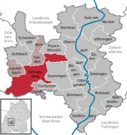 Lauterbach, Schiltach, Aichhalden, Fluorn-Winzeln, Oberndorf am Neckar, Bösingen, Dunningen, Eschbronn, Hardt, Königsfeld im Schwarzwald, Sankt Georgen im Schwarzwald, Triberg im Schwarzwald (Schwarzwald-Baar-Kreis) and Hornberg (Ortenaukreis).