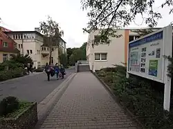 In 1924, a group of Seventh-day Adventists bought a former gym and dance studio from Elizabeth Duncan. The estate was located on the slope of the Odenwald in Darmstadt-Eberstadt. The authorities in the state of Hesse then approved the establishment of a mission school.[7] In 1925, a new building for the school workshops was built. Over the years, the number of workshops grew to nine: locksmith, carpentry, printing, upholstery, mattress manufacturing, knitting and others. Many students earned money from these workshops, with which they used to pay their tuition fees. Also, the number of teaching departments expanded.[7] There was a seminary, a business school, a housekeeping school, preschool and nursing courses for educators and kindergarten teachers. In the 1927–28 school year, the school expanded to include a six-year course of preparation for higher education - today's high school equivalent. The students were prepared for graduation, at Marienhöhe, and entered into tertiary education in the Darmstadt region. The range of educational opportunities and the reputation of the seminary brought more students and pupils to the school each year.[7] In the academic year 1928–29, enrolment peaked at 227 before the Second World War began.