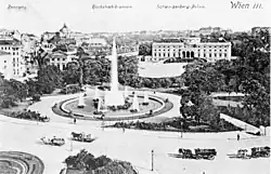 Franz Joseph I witnessed the commemoration ceremony of the First Vienna Mountain Spring Pipeline, on 23 October 1873 in front of the Palais Schwarzenberg (in an area that was not yet considered part of Schwarzenberg Platz).