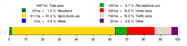 According to the State Statistical Officer of Baden-Württemberg, the municipality of Schwieberdingen comprises 1,487 hectares (3,670 acres) total, as of 2014. Agriculture takes up most of the municipality area at 61.3%, while the rest of the municipality is urban environment or woodland.[3]