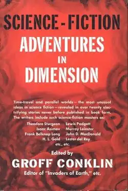 Science-Fiction Adventures in Dimension is an anthology of science fiction stories edited by Groff Conklin, first published by Vanguard Press in hardcover in 1953. An abridged edition was issued by Grayson & Grayson in the UK, and an abridged paperback edition, with a different selection of stories from the original, was issued by Berkley Books; both abridgments carried unhyphenated titles.[1]