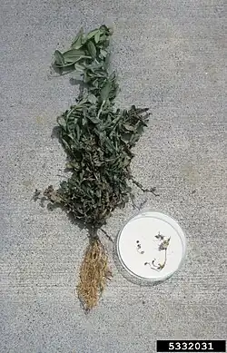 Sclerotinia trifoliorum is a plant pathogen infecting alfalfa, red clover, chickpea, and fava bean. Lithourgidis et al. have done much work on this disease and fava bean.[1]