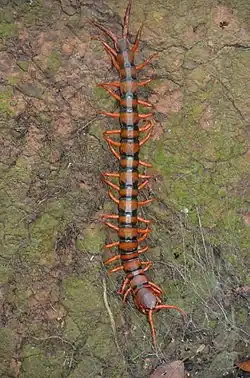 - ^ a b c Siriwut, Warut; Edgecombe, Gregory; Sutcharit, Chirasak; Tongkerd, Piyoros; Panha, Somsak (2016-05-17). "A taxonomic review of the centipede genus Scolopendra Linnaeus, 1758 (Scolopendromorpha, Scolopendridae) in mainland Southeast Asia, with description of a new species from Laos". ZooKeys (590): 1–124. Bibcode:2016ZooK..590....1S. doi:10.3897/zookeys.590.7950. ISSN 1313-2970. PMC 4926625. PMID 27408540.