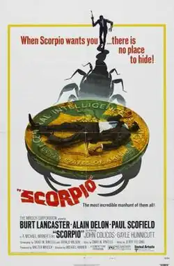 Scorpio is a 1973 American spy film directed by Michael Winner and written by David W. Rintels and Gerald Wilson. It stars Burt Lancaster, Alain Delon, and Paul Scofield. Delon plays the title character, a hitman hired by the CIA to assassinate his mentor (Lancaster), a former agent suspected of treason. The film's score was composed by Jerry Fielding.