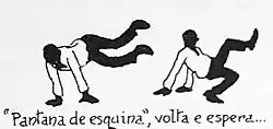The contemporary name for this technique is double scorpion (escorpião duplo) or just scorpion.[17] It was also known as patana de frente (front swamp) or pantana de cócoras (squatting swamp) in 1920s.[3]