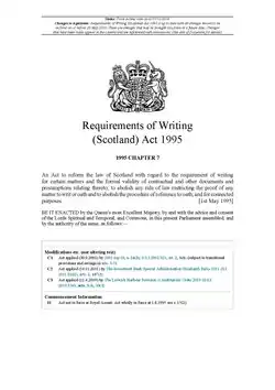 The default rule in Scotland is that contracts do not need to be in writing - they can be created orally. The Requirements of Writing (Scotland) Act 1995 provides exceptions for specific types of contract that must be created by writing. This includes: