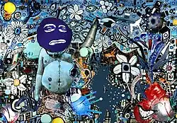 Scott Donohue (born 19 August 1982, in Newcastle upon Tyne) is an English contemporary artist who uses a wide range of media to celebrate and critique the modern age. His body of work spans a variety of forms including installation art, mixed media, painting and online interactive projects.[1] He blends fine art techniques with digital media to create a complex, vibrant style. The artist describes his work as "A simultaneous laugh and cry at modern times".[2] Donohue's work is often satirical, poking fun at society's obsession with technology, whilst celebrating sciences potential for positive impact on the future of humanity.