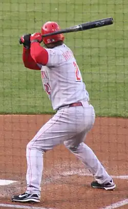 During the first weeks of the 2008 season, he was relegated to pinch-hitting while rookie Joey Votto replaced him at first base.[13] Pinch-hitting was relatively new to Hatteberg, who admitted that it was a role he was not particularly comfortable in even though he had hit his historic September 4, 2002, 20-game winning-streak clinching walk-off homer for Oakland as a pinch-hitter. On May 27, 2008, he was designated for assignment by the Reds to make room on the roster for top prospect Jay Bruce and officially released by the club on June 4.[13][14]