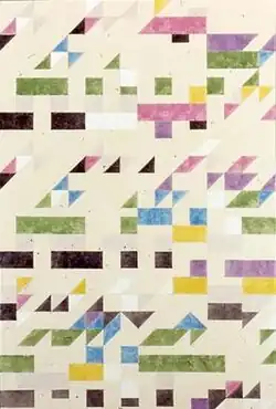The painting comprises acrylic paint on canvas. It is part of a series of paintings by Banks that depicts abstract musical scores by notable musicians. Scott Joplin depicts a piano score by Scott Joplin.[2][3] The painting was completed by Banks in 1982 and purchased by the Addison Gallery in 1983. It has been exhibited twice at the Addison Gallery, in 1983 and 1988.[1]