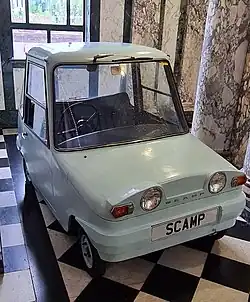 - Scamp, registration LHT 149E, painted light blue, displayed by the Scottish Motor Museum Trust in the entrance hall of Loch Lomond Factory Outlets, formerly the Argyll Motor Works in Alexandria, West Dunbartonshire.