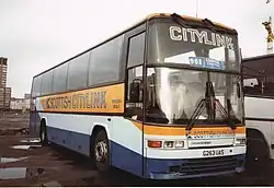 Scottish Citylink was created in October 1983 as route branding to improve the public awareness of the for Scottish Bus Group's commuter coach network,[3] and within a year, passengers numbers had risen by 30%.[4] On 1 March 1985, as part of the reorganisation of the Scottish Bus Group, it become a stand alone company to co-ordinate and manage the long-distance express services operated by the other SBG subsidiaries,[5][6] particularly the Western Scottish and Eastern Scottish services from Glasgow and Edinburgh to London and the south.