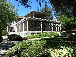 Homeowners sometimes use their screened porches in lieu of climate control when the latter is unavailable. For example, when the loss of electricity prevents air conditioning systems from working, a screened porch may be a cooler sleeping location. At the same time, screened porches can be used to permit an outdoors experience while being sheltered from direct sunlight and flying insects;[2] some builders even include skylights in their designs when a porch would otherwise be excessively dark. Some people experience a sense of intimacy and quiet privacy when spending their leisure hours on a screened porch.[4] In the field of landscape architecture, a screened porch may even be used to divide surrounding gardens or lawns into smaller zones; at the Walter Gropius House in the northeastern United States, the screened porch serves as a transitional zone between a normal room of the house and a normal outdoors area, and its extended roof supports help to create the appearance of a frame around the surrounding terrain, dividing the land into multiple zones comparable to the rooms of a house.[5]