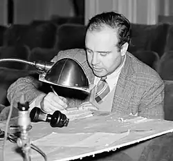 Welles and Mankiewicz soon settled on the idea of using newspaper magnate William Randolph Hearst as their central character.[10]: 484 By late January their disagreements over plot details were more frequent and their collaboration less creative. "That's why I left him on his own, finally," Welles said later, "because we'd started to waste too much time haggling."[4]: 54 In February 1940,[3]: 444, 448 Welles arranged a lunch at New York's 21 Club and persuaded Houseman to return to California. He was hired to supervise Mankiewicz as he put a rough draft on paper.[9]: 185