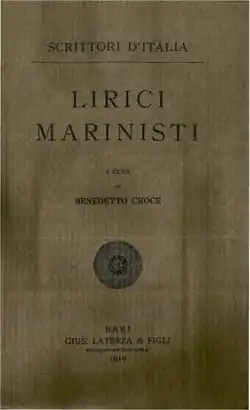 - 1.Benedetto Croce, ed. (1910). Lirici marinisti. Bari, G. Laterza.