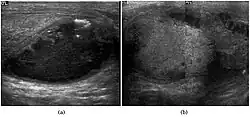 - ^ Kühn A, Scortegagna E, Nowitzki K, Kim Y (July 2016). "Ultrasonography of the scrotum in adults". Ultrasonography. 35 (3): 180–197. doi:10.14366/usg.15075. PMC 4939719. PMID 26983766.