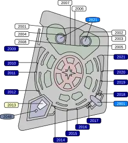 - ^ Maternidad (2001), Pastor de la flauta (2002), Navegación (2003), Joven (2004), Juventud (2005), Figura femenina (2006), Mujer con niño y flautín (2007), El forjador (2008), Gerona (2009), Montseny/Mujer (2010), Pescador/Emporion (2011), Trabajo (2012), La Diosa (2013), Sabiduría (2014), Pomona/Pastor del águila (2015), El espíritu popular/Mujer con imagen de la Virgen (2016), Lérida (2017), Tarragona (2018), Mujer con ángel/Hércules (2019), Figura femenina/Montserrat (2020), Barcelona (2021), Fuente de los seis putti (2801), Monumento a Francesc Macià (2048).
