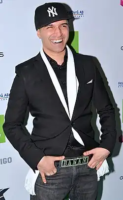 Sina Samadi (born 7 April 1985), known by his stage name Sean Banan ("Sean Banana") is an Iranian-Swedish comedian and musician.[2] His family immigrated to Sweden when he was 2 years old and resided in Gothenburg. Samadi took lessons in rumba, flamenco, rock, cha-cha-cha, ballet and street dance.[3] He then worked as a choreographer and dance instructor. In 2006, he appeared on TV3's now defunct dance programme Floor Filler. He became an immediate internet phenomenon after appearing in an interview in 2007 after answering some questions about his preferences and said he preferred rumpa (buttocks) to breasts.[4] Rumpa became a catch phrase he would use in many of his future gigs.