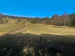 The Pivka seasonal lakes are a group of 17 seasonal lakes; the best-known are Lake Petelinje and Lake Palčje, which is the biggest of them at about 1.9 square kilometres (0.73 sq mi).[1][2] They are all located in Pivka Basin, Inner Carniola, Slovenia.[1] Lake Jeredovce, the northernmost lake, is in Municipality of Postojna, 10 of them (Krajnikov dol, Lake Petelinje, Lake Radohovo, Lake Klenik, Lake Palčje, Lake Parje, Big and Little Lake Drskovče, and Big and Little Lake Zagorje) are in Municipality of Pivka and the southernmost 6 (Kljun Pond, Lake Kalec, Lake behind Kalec (Veliki dol), Lake Bač, Lake Lan, and Lake Šembije) are in the Municipality of Ilirska Bistrica, all of them are located at elevations between 549 metres (1,801 ft) and 570 metres (1,870 ft).[2] There are also two areas (polje) that are only inundated during intense floods, so they are not officially considered among the Pivka seasonal lakes.