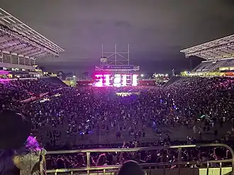 A permanent stage allows the stadium to host concerts and quickly change configurations. A typical conversion from soccer to stage takes no more than 18 hours. The field accommodates 8,000 additional chairback seats for concerts and other stage events. SeatGeek Stadium is currently operated by Spectra.[1][2]
