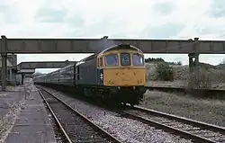 A British Rail Class 33 in the station in 1979, since the station was closed.