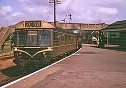 Originally, trains arriving from the Seaton branch had to reverse into the "down" (westbound) platform. However, when the station was reconstructed in 1927–8 with two through tracks on the main line and loops to the newly extended platforms, a branch line platform was added.[4] This was set at an angle of 45° to the main line.