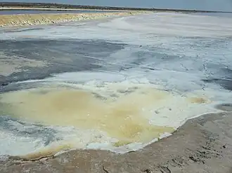 The Sebkha Sidi El Hani (سبخة سيدي الهاني) is a salt lake in the Sousse Governorate of Tunisia, 25 kilometres (16 mi) southwest of the city of Sousse and 25 kilometres (16 mi) southeast of the city of Kairouan. It covers an area of 36,000 hectares and consists of three depressions: the Sidi El Hani sebkha stricto sensu, the Sebkha Souassi and the Sekha Dkhila. Fueled by several wadis, such as the Wadi Chrita, the Wadi Mansoura and the Wadi Oum El Mellah, it retains water all year round only occasionally. The catchment area is 360 square kilometres (140 sq mi) and the system empties into the Mediterranean Sea.