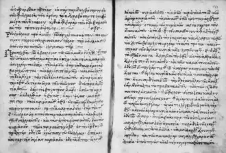 François Nau first published the text with a French translation based on the 16th-century manuscript Parisinus Graecus 947, where it is found at folios 276–282, at the end of a collection of miscellaneous texts. There it is written in garbled Cypriot Greek, probably a translation from an earlier vernacular Greek original. Nau believed that the original was also written on Cyprus.[6] There is an English translation.[7]