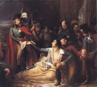 The general Charles de Bonchamps had been transported to a house in Saint-Florent-le-Vieil. Severely wounded, he was dying when he heard that the republican troops were to be executed. He ordered his second, Charles de Beaumont d'Autichamp, to prevent that from happening, his dying wish.