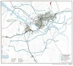 The North Koreans, after their failure during the night of 21-22 September to drive Barrow's company from its advanced position at the eastern edge of Yongdungp'o, apparently abandoned the city before daybreak. The 1st Marines occupied the city the next morning. On the left near the river they reached the destroyed railroad and highway bridges over the Han River 2 miles (3.2 km) east of Yongdungp'o (37°30′50″N 126°57′22″E / 37.514°N 126.956°E).[3]: 520