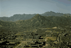 The KPA defense line at the western edge of Seoul was anchored at the north on Hill 296 just south of the Kaesong highway and west of Seoul's Seodaemun Prison. From the crest of Hill 296 the KPA line curved in a gentle half-moon eastward and southward down spur ridges 2.5 miles (4.0 km) to the Han River, the concave side facing west toward the UN troops. The greater part of this uneven ridge line was dominated by three hills, each 105 meters high, and accordingly known as Hills 105. Hills 105 North (37°34′23″N 126°57′00″E / 37.573°N 126.950°E) and 105 Center (37°34′16″N 126°57′04″E / 37.571°N 126.951°E) lay north of the rail and highway lines running into Seoul along the northern bank of the Han River; Hill 105 South (37°34′08″N 126°57′16″E / 37.569°N 126.9545°E) lay between the rail and road lines and the river. Hills 105 Center and 105 South completely dominated the Pusan-to-Manchuria Kyonggi main rail line and the road that passed through the saddle between them to enter the city. These hills had been a training area for Japanese troops during the Japanese colonial period and since then of both South and North Korean soldiers. The area was well covered with various types of field fortifications and susceptible to quick organization for defense. The main railroad station and Capitol building lay in the center of Seoul 2 miles (3.2 km) east of these positions.[3]: 524