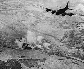![]() A B-17 returning to England above Schweinfurt in flames | |||||||
