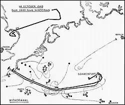 The second Schweinfurt raid,[9] also called Black Thursday, was a World War II air battle that took place on 14 October 1943, over Nazi Germany between forces of the United States 8th Air Force and German Luftwaffe fighter arm (Jagdwaffe). The American bombers conducted a strategic bombing raid on ball bearing factories to reduce production of these vital parts used in all manner of war machines. This was the second attack on the factories at Schweinfurt. American wartime intelligence claimed the first Schweinfurt–Regensburg mission in August had reduced bearing production by 34 percent but had cost many bombers. A planned follow-up raid had to be postponed to rebuild American forces.