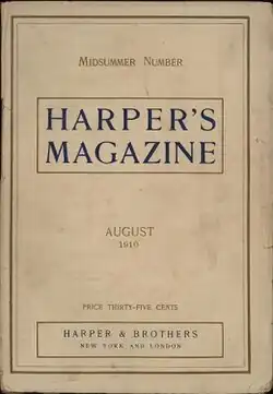Conrad wrote “The Secret Sharer” in a matter of weeks at the end of 1909 which was “exceptionally quick for him.”[6] Conrad found that his American publisher, Harper & Brothers, and its president Colonel George Harvey were particularly receptive to his material. Between 1903 and 1913, they would publish five of his novels and four works of his short fiction.[7] “The Secret Sharer” appeared in Harper’s Magazine in August–September 1910.[8]