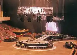 Brilliant Stages, a division of the Samuelson Group, built the pair of stages linked by moving walkway.[6] Gabriel appreciated the results. He said that "having two places to go, the feeling of playing two stages, was quite different from the usual show where everybody's pointing the same way and the energy is going in the same direction." Lepage insisted the band learn to dance together, even skipping together.[4]