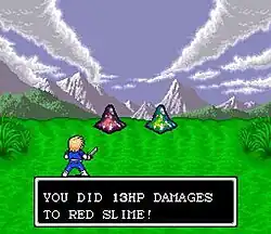 Secret of the Stars uses a turn-based RPG battle system where actions in battle are selected through a menu and actions are presented at the end of the turn. Gameplay switches between two parties throughout the game and certain areas are inaccessible without the right party.