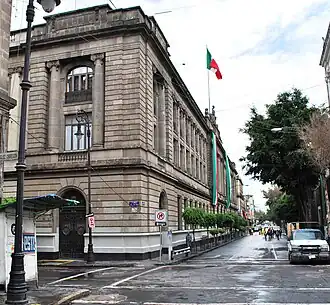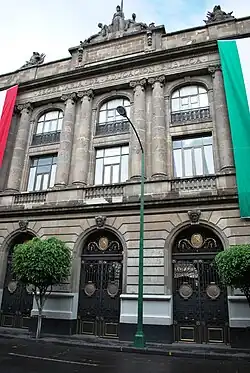 Like all other convents and monasteries in Mexico, this convent was disbanded after the Reform War in 1861, but its associated church continued to operate as such until 1917.[3] The property became state property and the complex has housed a number of institutions such as the Jurisprudence School, the National Girls’ School and others until after the Mexican Revolution. From 1911 and 1922, the new Secretariat of Public Education (SEP), took over the building at the corner of San Ildefonso and Rep. de Argentina and extensively remodeled it, hiring engineer Federico Méndez Rivas.[2] Since that time, the SEP has taken over a number of other buildings in the city to house offices, but this one still remains the main headquarters[3][4]