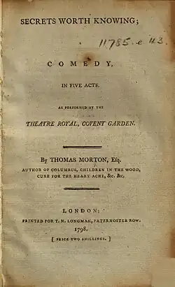 Secrets Worth Knowing is a 1798 comedy play by the British writer Thomas Morton.[2]