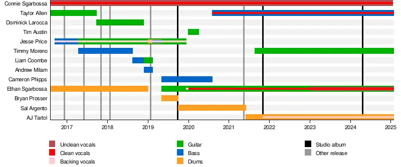- Connie Sgarbossa – lead vocals (2016–2025)[3][17]