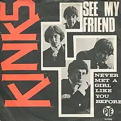 "See My Friends" (sometimes titled "See My Friend")[5][nb 1] is a song by the English rock band the Kinks, written by the group's singer and guitarist, Ray Davies. Released in July 1965, it reached number 10 on the Record Retailer chart. The song incorporates a drone-effect played on guitar, evoking a sound reminiscent of the Indian tambura.[8]
