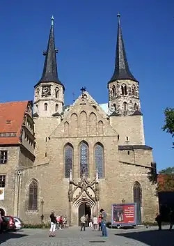 The Bishopric of Merseburg was an episcopal see on the eastern border of the medieval Duchy of Saxony with its centre in Merseburg, where Merseburg Cathedral was constructed. The see was founded in 967 by Emperor Otto I at the same time in the same manner as those of Meissen and Zeitz (from 1029: Naumburg), all suffragan dioceses of the Archbishopric of Magdeburg as part of a plan to bind the adjacent Slavic ("Wendish") lands in the Saxon Eastern March beyond the Saale River more closely to the Holy Roman Empire.