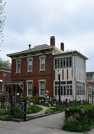 The Seeberger–Loring–Kilburn House is a historic residence located in Oskaloosa, Iowa, United States. The house was the work of David L. Evans, a master builder who completed it in 1859. It is the oldest known surviving work of his, and calls attention to his skill as a builder.[2] Evans was a native of Wales and emigrated to the United States at the age of 14. He settled in Ohio and St. Louis before settling in Oskaloosa in 1845. The two-story, brick, Italianate structure features a hip roof and deck, bracketed cornice and simple hood molds. The second story was added in 1869 by Evans. Des Moines architect Frank E. Wetherell, who was born in Oskaloosa, designed an expansion of the house in 1916. It added the solarium on the east side, and a pergola on the west. The house was individually listed on the National Register of Historic Places in 1983. It was included as a contributing property in the Paradise Block Historic District in 1991.[3]