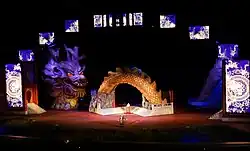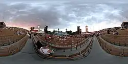 In 2006, a new sound system developed by the Fraunhofer Institute for Digital Media Technology and also in use at the Bregenz Festival was put into operation. This makes directional listening possible despite the size of the stage.[8][9] For several years the premiere of the Seefestspiele was broadcast by the ORF.[10] With the 2013 season, however, this practice was ended.
